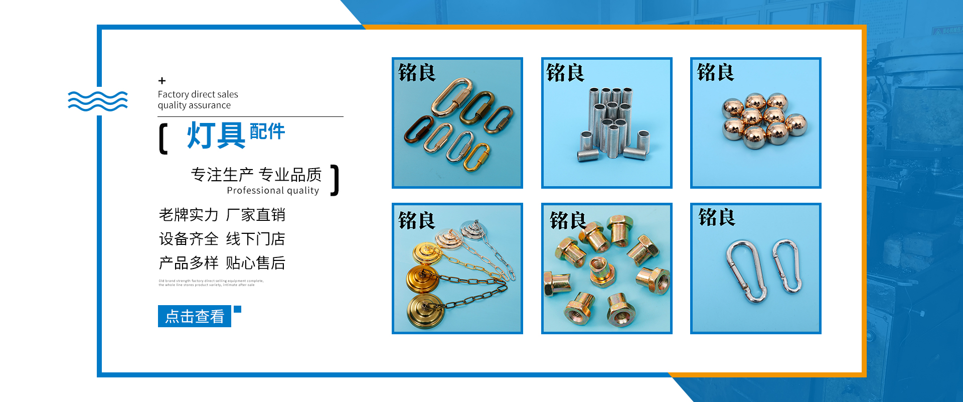 銘良標(biāo)準(zhǔn)件生產(chǎn)銷(xiāo)售燈具配件、非標(biāo)緊固件等相關(guān)產(chǎn)品。自有現(xiàn)代化生產(chǎn)車(chē)間完善的管理流程,為客戶(hù)快速供貨。